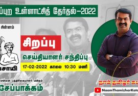 Contact Us To Add Your Business தமிழகத்தில் வருகின்ற பிப்ரவரி 19 அன்று, ஒரே கட்டமாக நடைபெறவிருக்கும் நகர்ப்புற உள்ளாட்சித் தேர்தலில் “விவசாயி” சின்னத்தில் போட்டியிடுகின்ற நாம் தமிழர் கட்சி