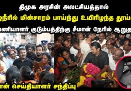 Contact Us To Add Your Business திமுக அரசின் அலட்சியத்தால் மழைநீரில் மின்சாரம் பாய்ந்து உயிரிழந்த தூய்மைப் பணியாளர் குடும்பத்திற்கு சீமான் நேரில் ஆறுதல் நாம் தமிழர் காணொலிகள் மற்றும்